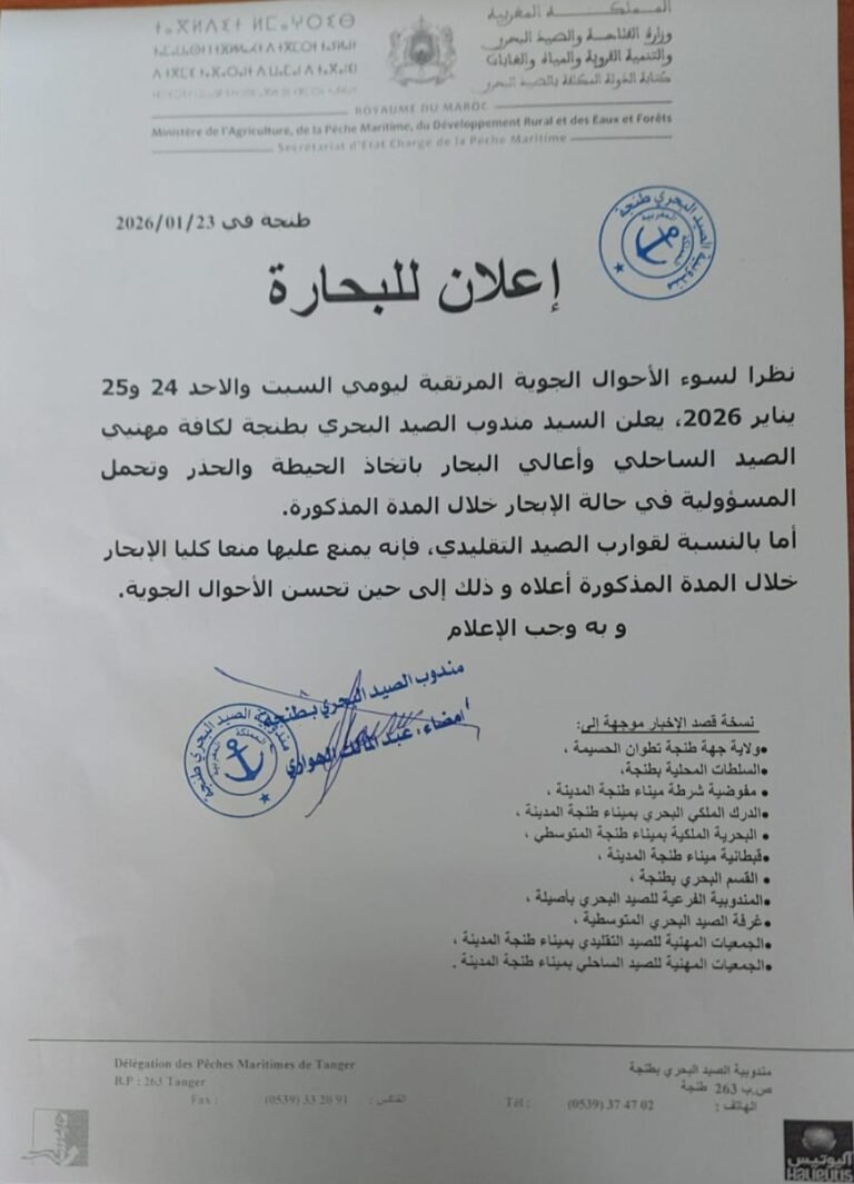 في خطوة تهدف إلى تطوير المنظومة البيئية وتحسين تدبير النفايات بمختلف أنواعها، توصلت غرفة الصيد البحري المتوسطية بقرار ولائي صادر عن والي جهة طنجة-تطوان-الحسيمة، يقضي بإحداث اللجنة الاستشارية