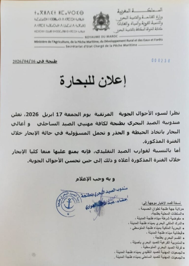 في إطار الدينامية المتواصلة التي تشهدها برامج المبادرة الوطنية للتنمية البشرية، وجّهت ولاية جهة طنجة تطوان الحسيمة دعوة رسمية إلى السيد رئيس غرفة الصيد البحري المتوسطية، من أجل حضور
