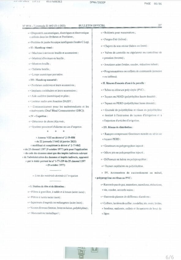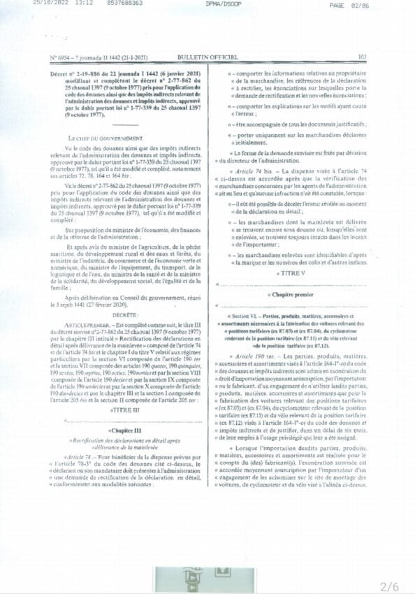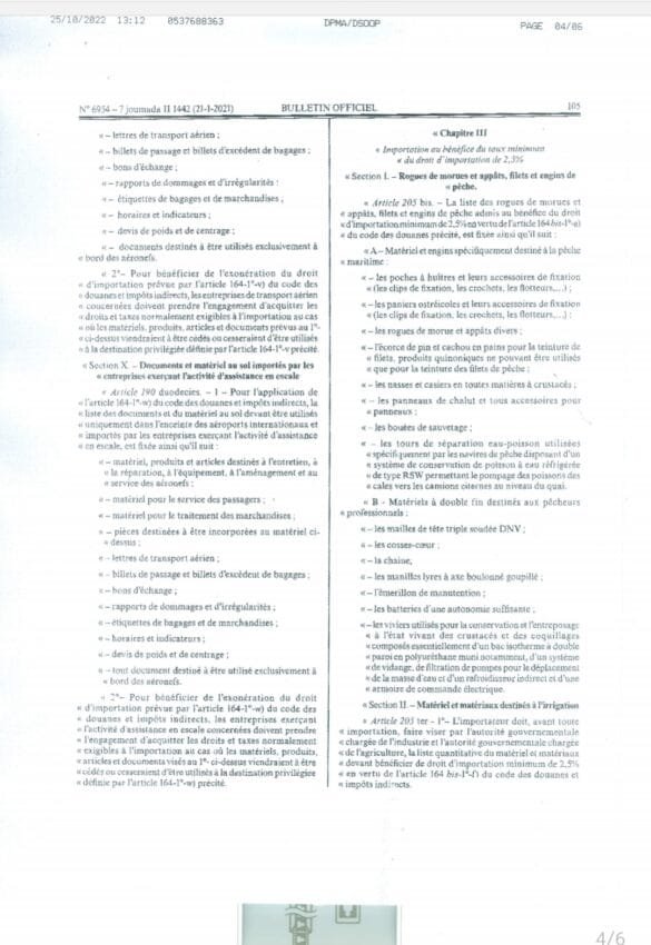 تشير المادة الثالثة من هذا المرسوم إلى تحديد قائمة الطعم والشباك ومعدات الصيد المؤهلة لرسوم الاستيراد لا تقل عن 2,5 في المائة، بناء على المادة 164 من قانون الجمارك الخاص بهذا الإطار: