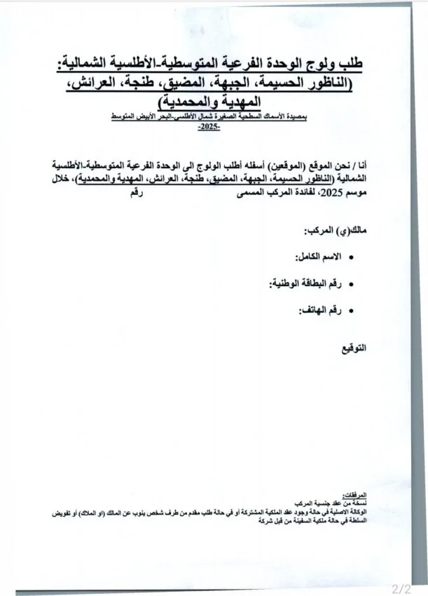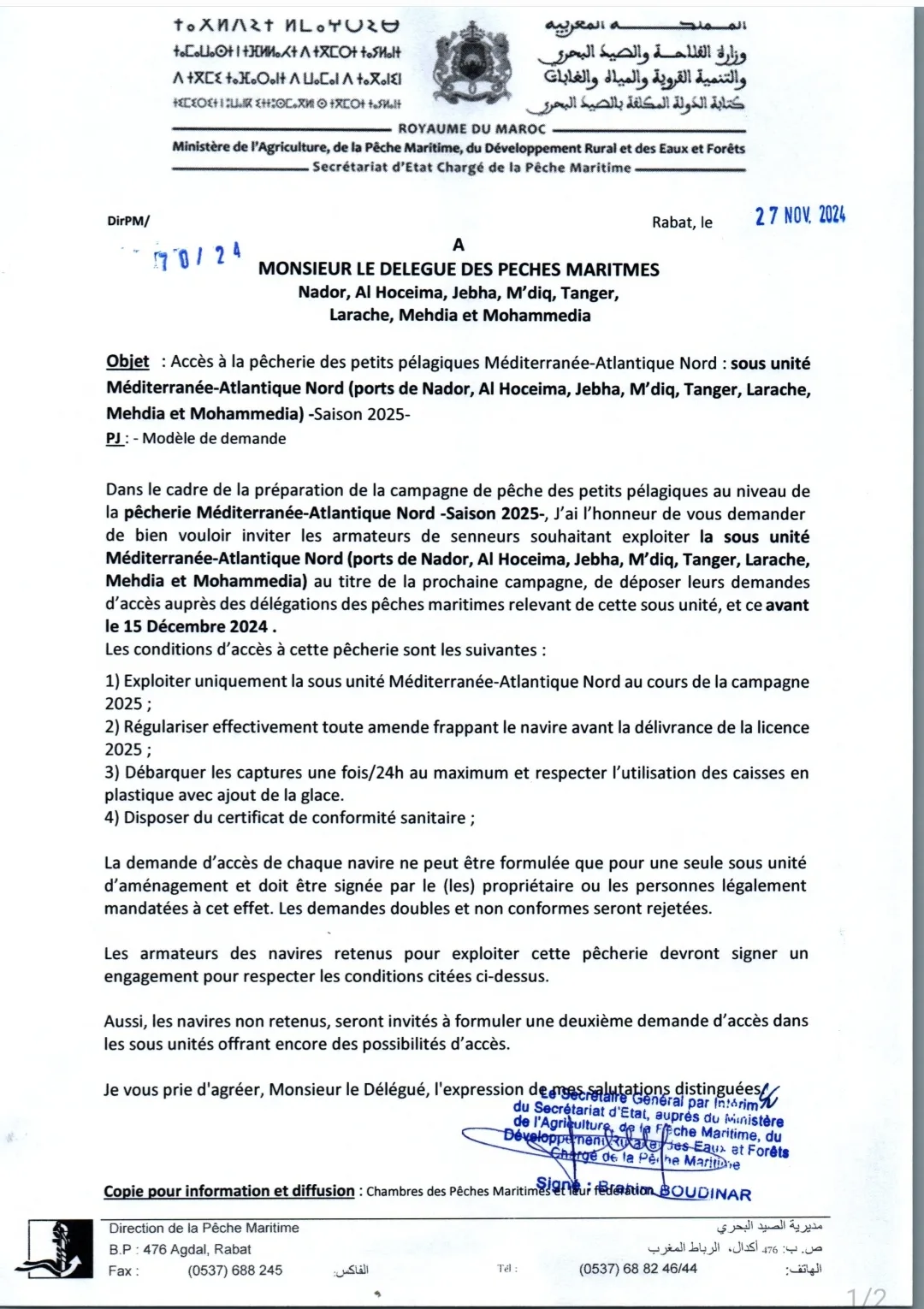 ولوج مصيدة الأسماك السطحية الصغيرة المتوسطية- الأطلسية الشمالية (الطلب) الجمعة 29 نوفمبر 2024الخميس 28 نوفمبر 2024 تحميل الطلب طلب ولوج المصيدة الشماليةتنزيل Share this… Whatsapp Gmail Facebook Twitter Linkedin