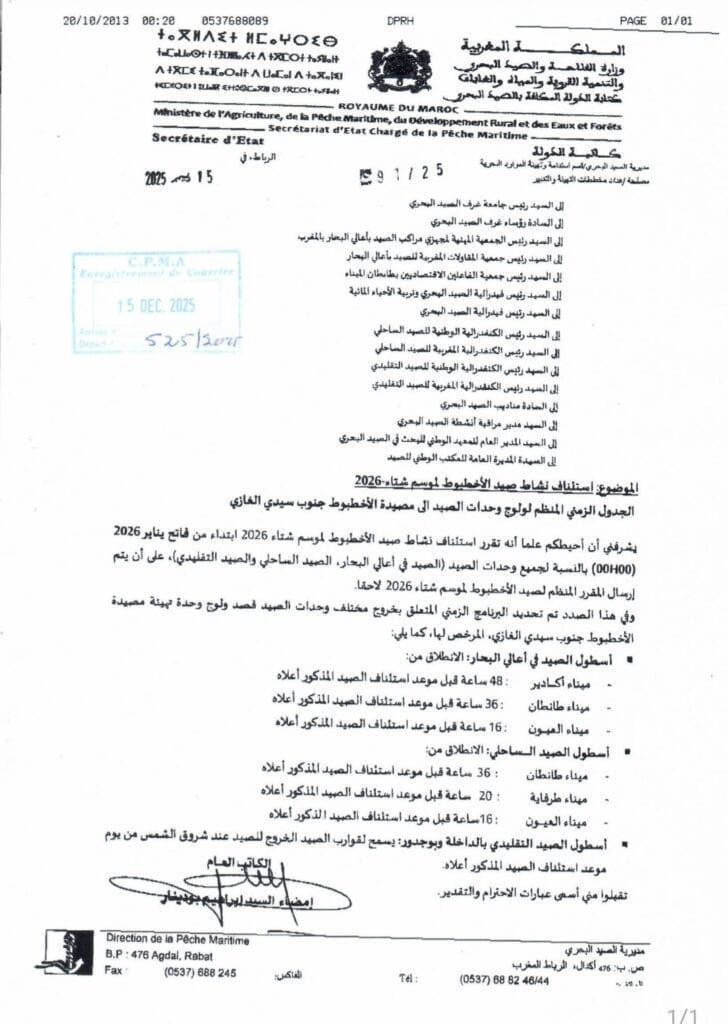 إعلان عن استئناف نشاط صيد الأخطبوط جنوب سيدي الغازي موسم شتاء 2026 (الجدول الزمني)