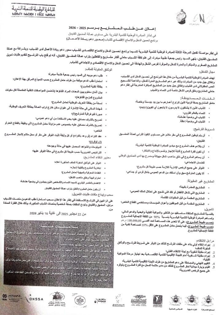 إعلان عن طلب المشاريع برسم سنة 2025- 2026 الخميس 25 ديسمبر 2025 Share this… Whatsapp Gmail Facebook Twitter Linkedin