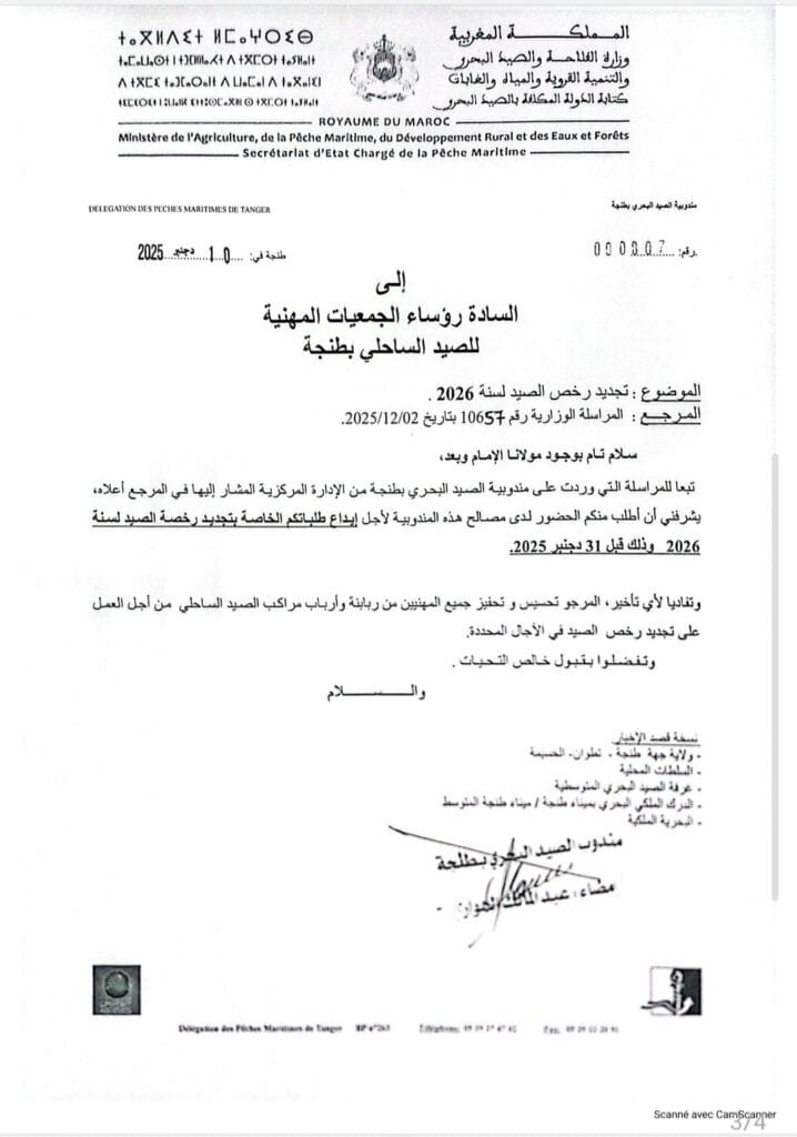 إعلان لجمعيات الصيد الساحلي بميناء طنجة حول تجديد رخص الصيد 2026 الأربعاء 10 ديسمبر 2025 Share this… Whatsapp Gmail Facebook Twitter Linkedin