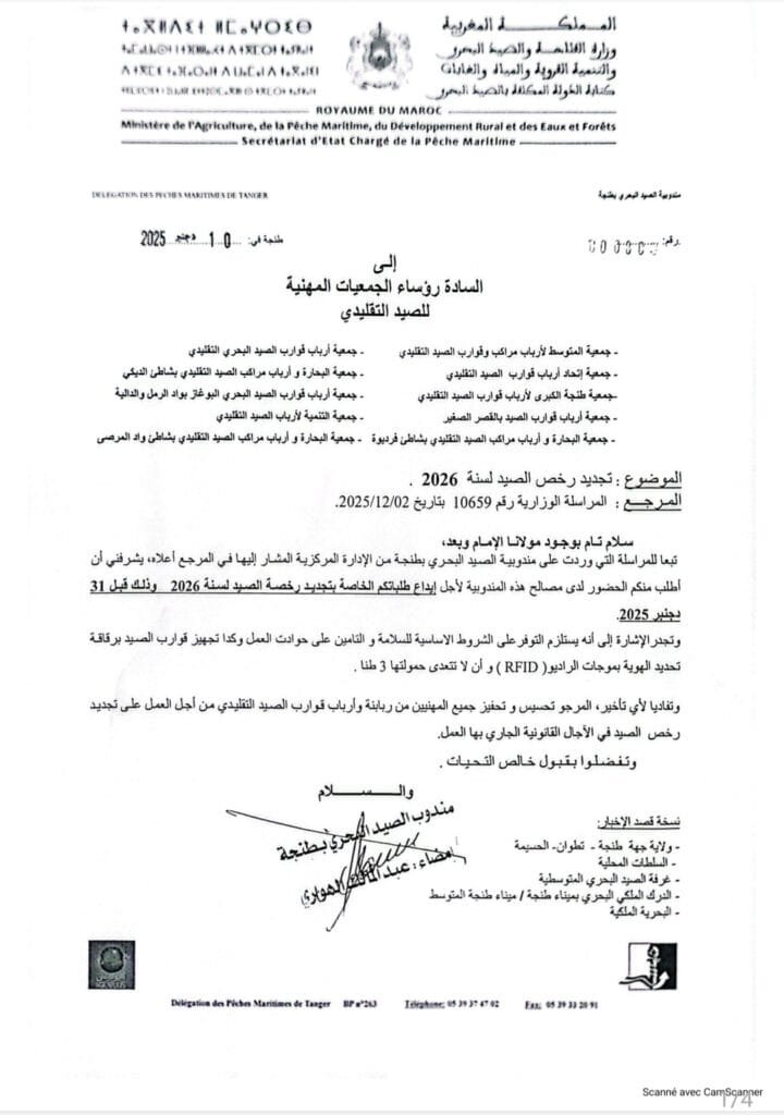 إعلان للجمعيات المهنية للصيد التقليدي حول تجديد رخص الصيد 2026 الأربعاء 10 ديسمبر 2025 Share this… Whatsapp Gmail Facebook Twitter Linkedin