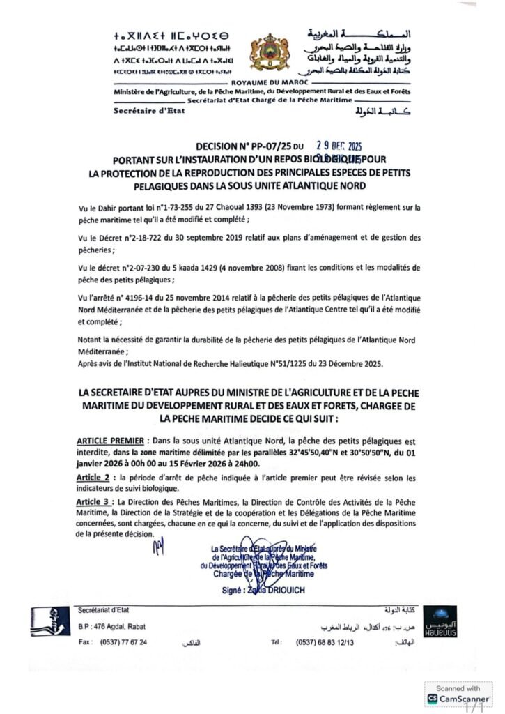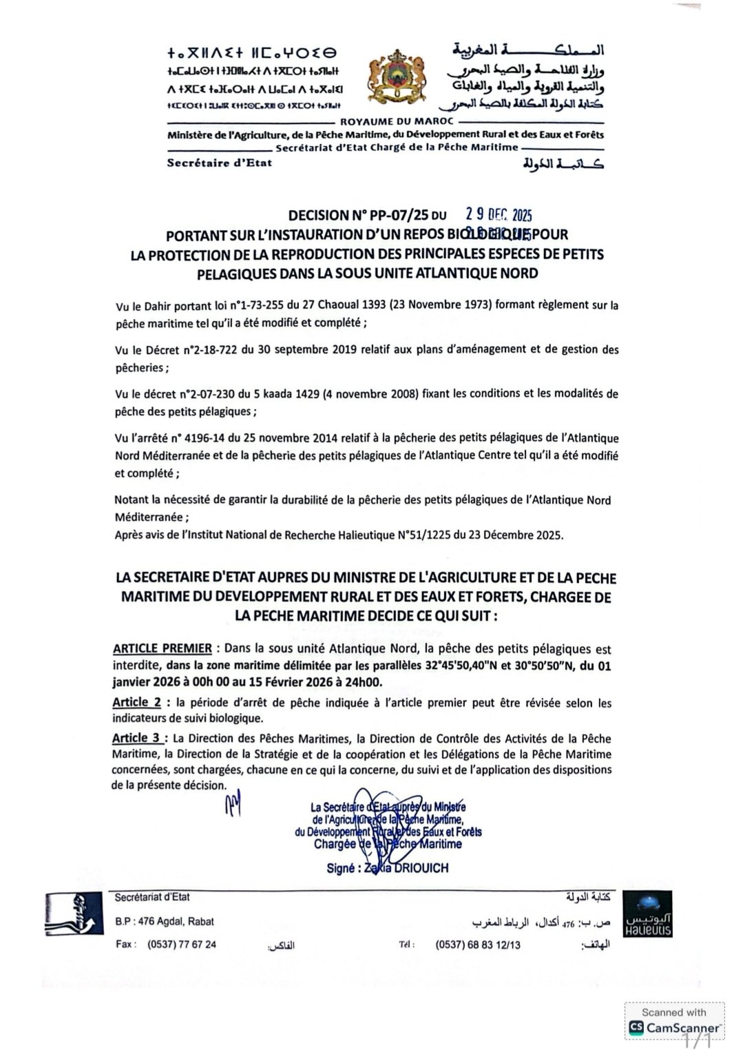 القرار المتعلق بإنشاء فترة راحة بيولوجية في الوحدة الفرعية للأسماك السطحية الصغيرة – شمال المحيط الأطلسي –