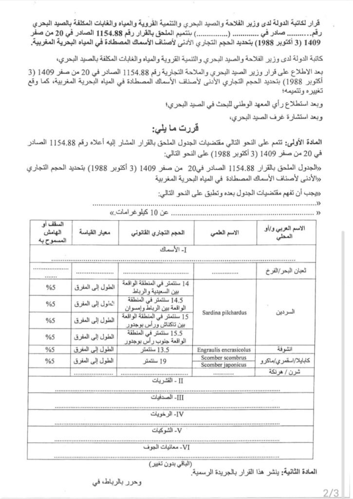 مشروع قرار لإبداء الرأي حول تحديد الحجم التجاري الأدنى لبعض أصناف الأسماك المصطادة الجمعة 19 ديسمبر 2025 Share this… Whatsapp Gmail Facebook Twitter Linkedin