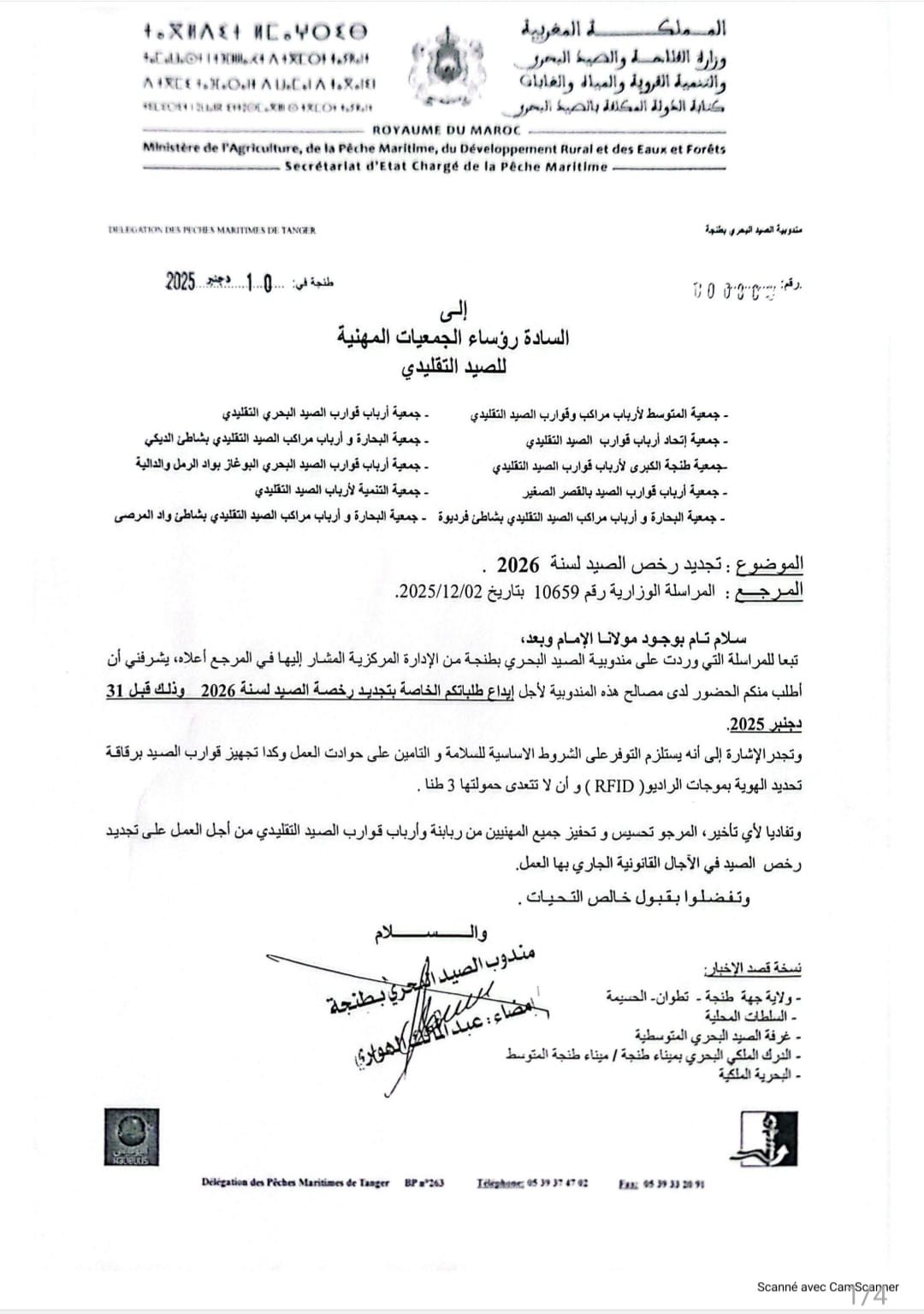 إعلان للجمعيات المهنية للصيد التقليدي حول تجديد رخص الصيد 2026